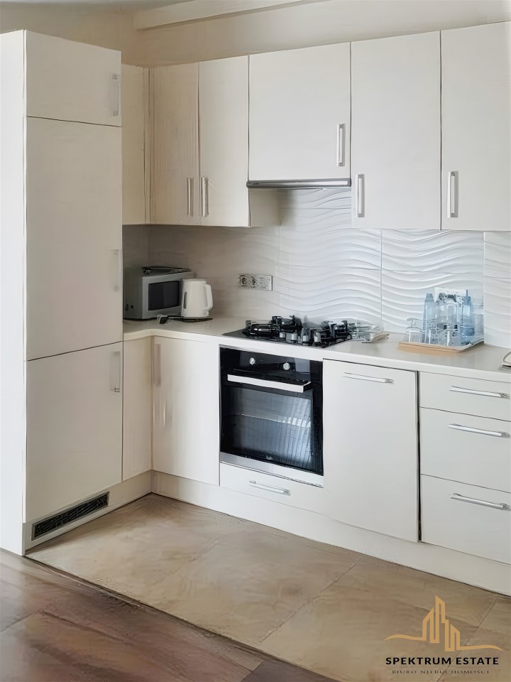 Mieszkanie położone jest na 4 piętrze w kamienicy 4 piętrowej ( brak windy ) Nadbudowa z 2015 roku ( remont w 2020) Składa się z salonu z aneksem kuchennym, sypialni z garderobą , łazienki z WC. Mieszkanie wyposażone jest w sprzęt AGD: zmywarka, kuchenka gazowa z piekarnikiem , lodówka z zamrażalnikiem, okap, pralko-suszarka. Kuchnia w pełni wyposażona Mieszkanie jest w pełni umeblowane na co składa się: -szafa w przedpokoju -komoda , szafa, garderoba , oraz duże wygodne łóżko w sypialni -meble kuchenne (białe lakierowane ), rozkładany stół z 4 krzesłami , rozkładana kanapa , oraz -stolik kawowy w salonie.