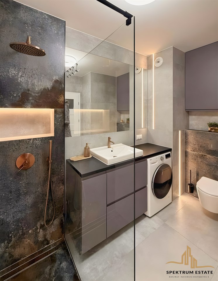 | Wyposażenie łazienki | kabina prysznicowa, lustro, pralka, prysznic, umywalka, WC |