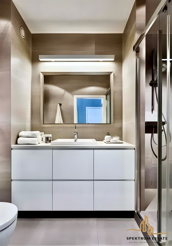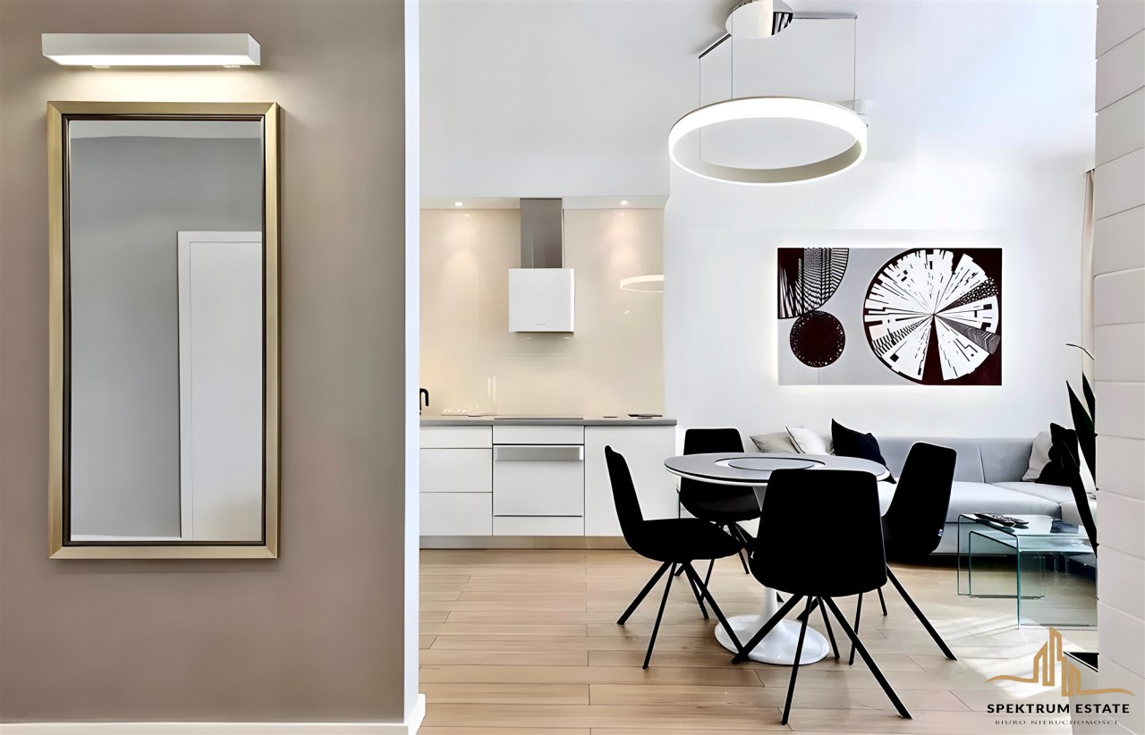 Luksusowy dwupokojowy apartament o powierzchni prawie 60 m2 znajduje się na I piętrze nowoczesnego apartamentowca z 2010r. W budynku jest winda.