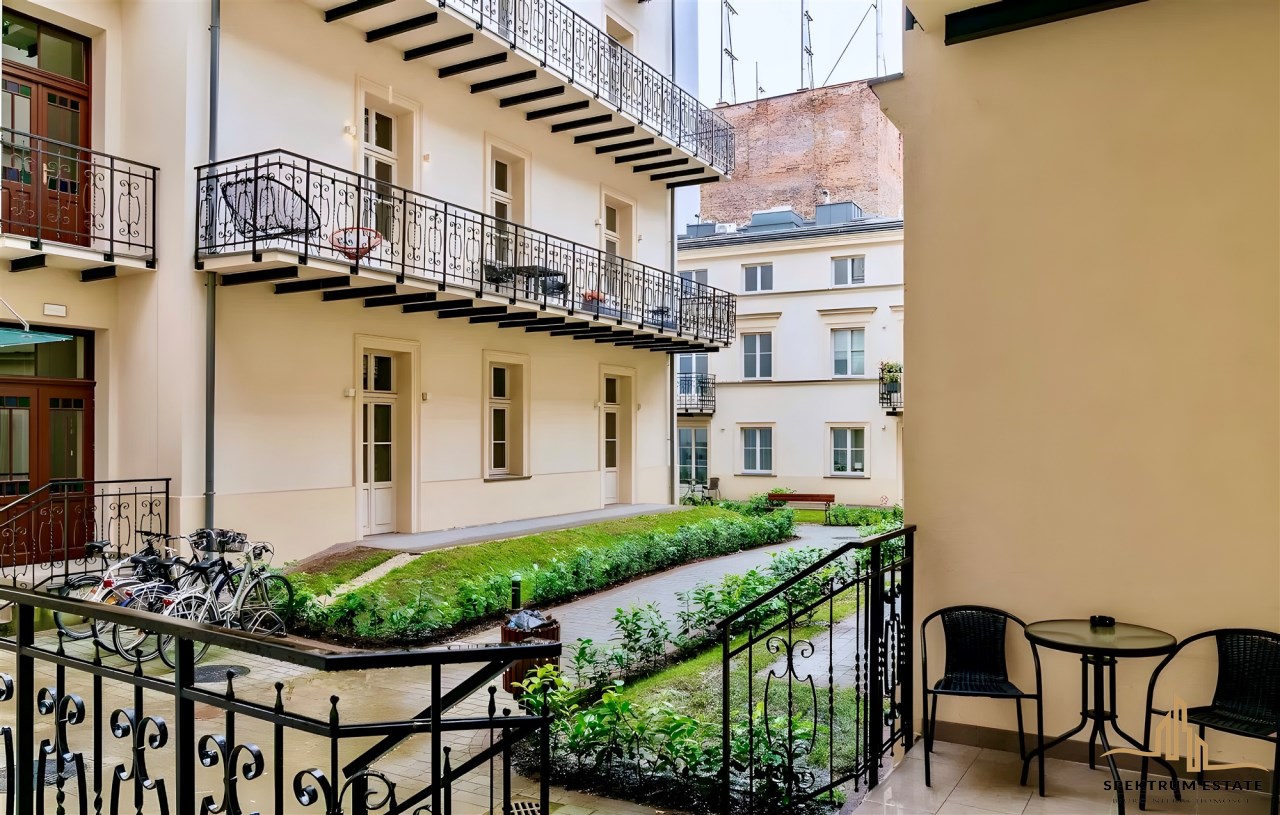 - dwa wyjścia na taras z zejściem do ogrodu/dziedzińca ogólnodostępnego