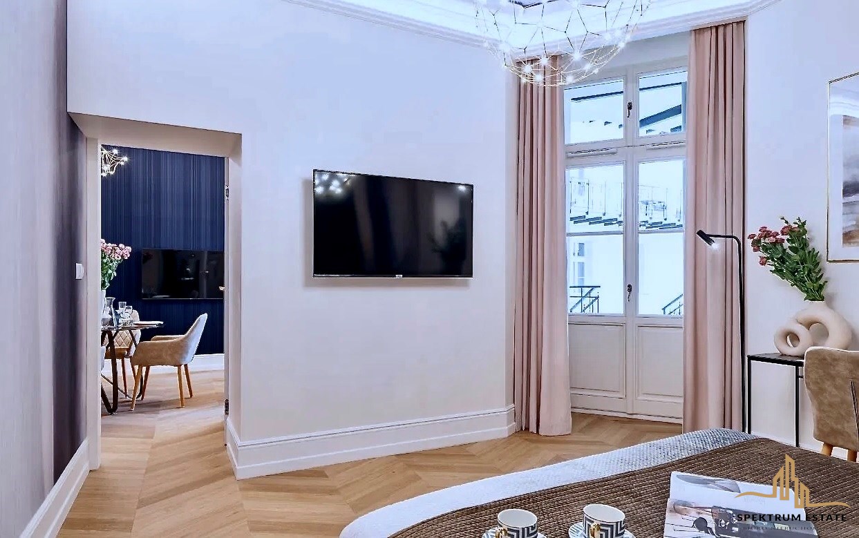 Nieruchomości, zlokalizowanej na wysokim parterze trzypiętrowej kamienicy z windą z 1920 składają się: