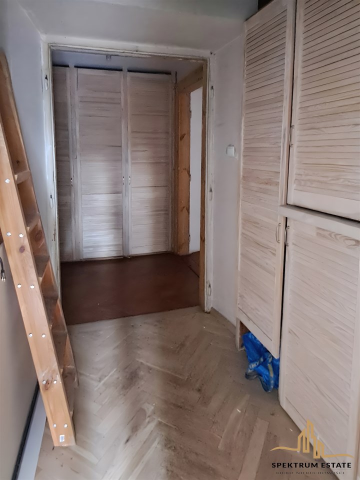 W mieszkaniu zachowany oryginalny, dębowy parkiet do odnowienia oraz wewnętrzne dwuskrzydłowe drzwi.