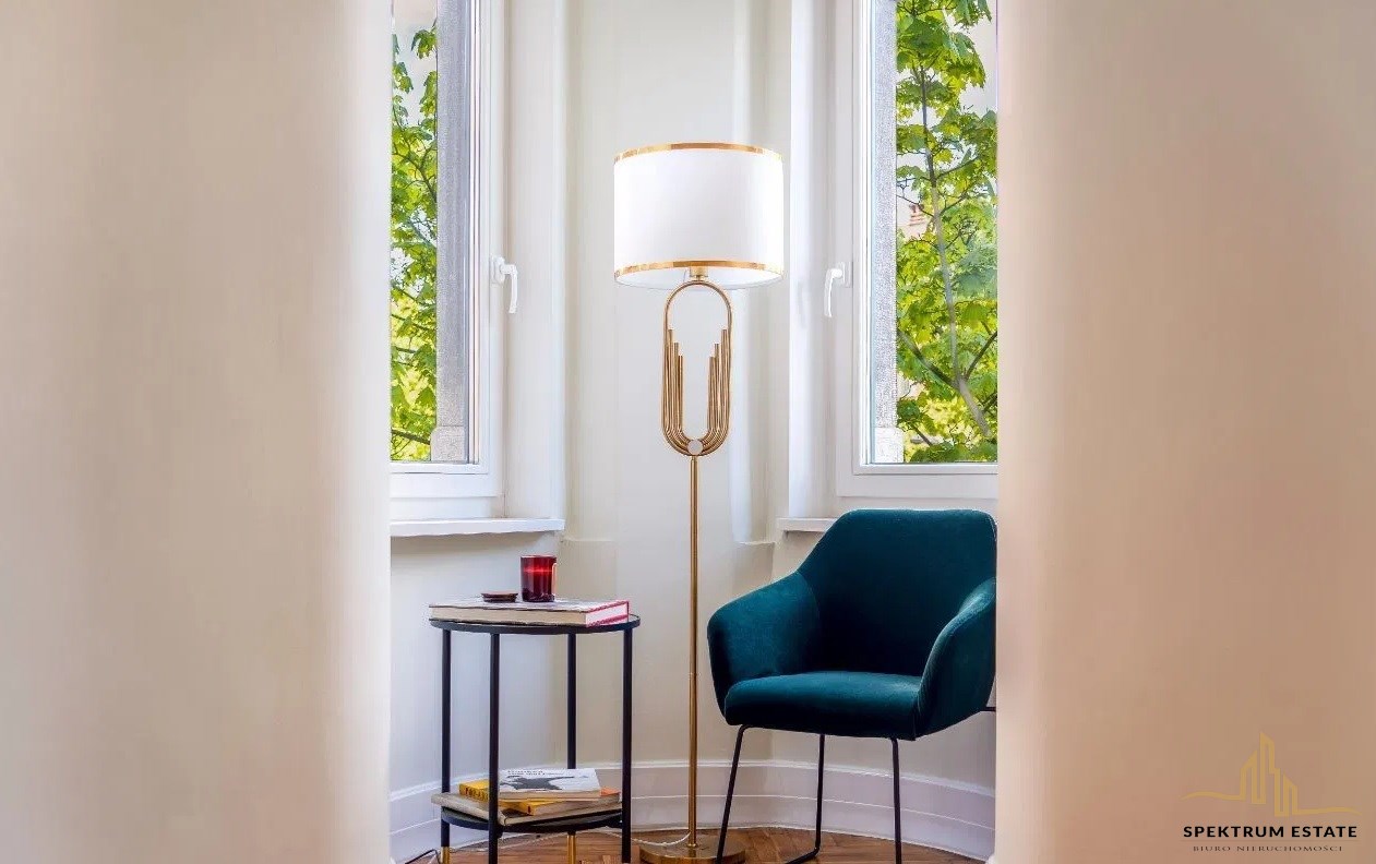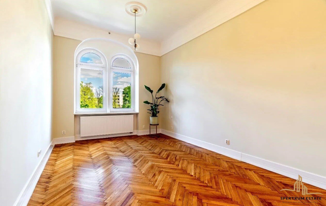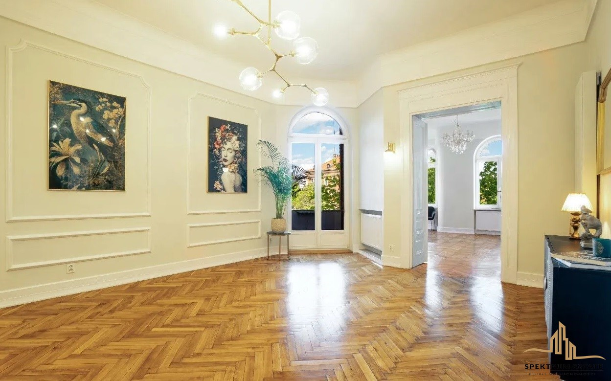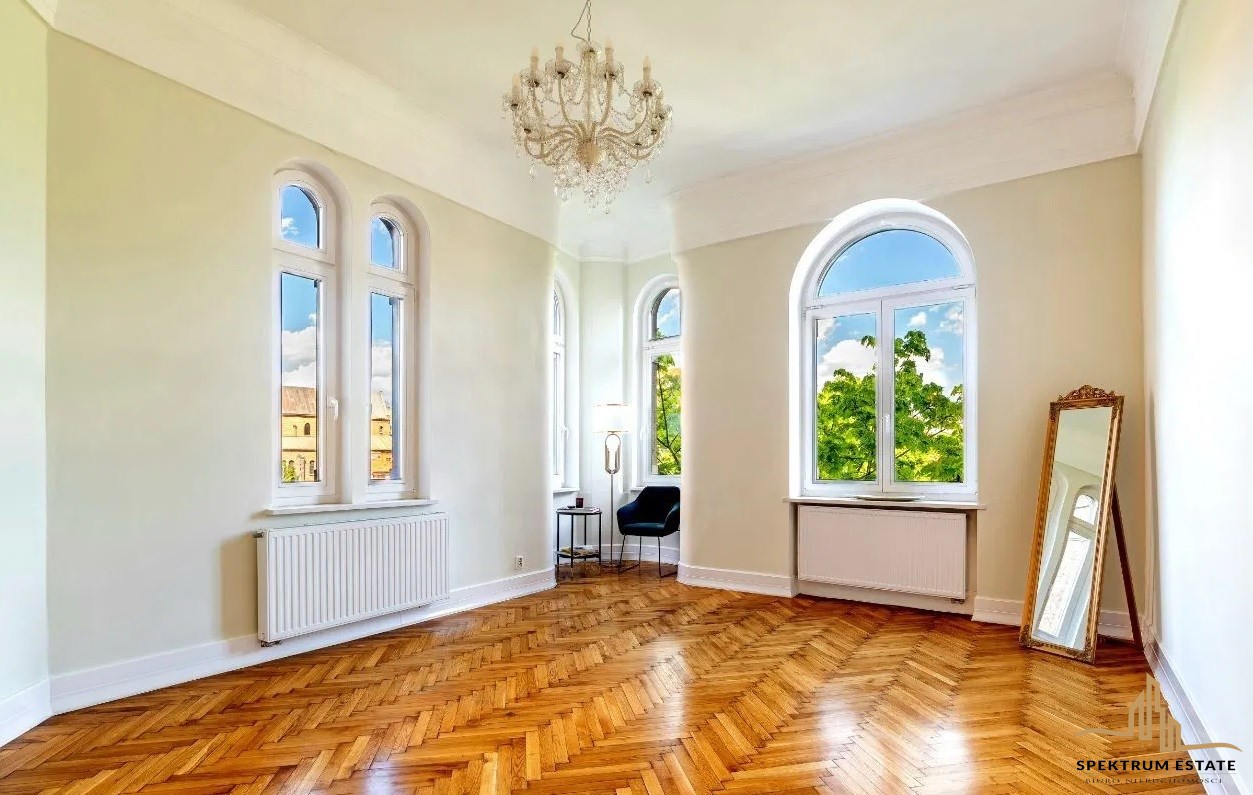 Podłogi mieszkania stanowią oryginalne odrestaurowane parkiety, mieszkanie przeszło generalny , wymieniono instalacje elektryczne, wod- kac, c.o nowe tynki, nowe łazienki, drzwi oryginalne odrestaurowane, nowe okna drewniane, wysokość pomieszczeń około 340 cm .