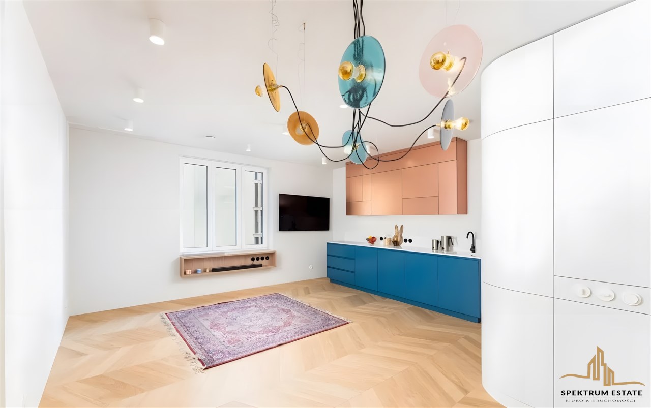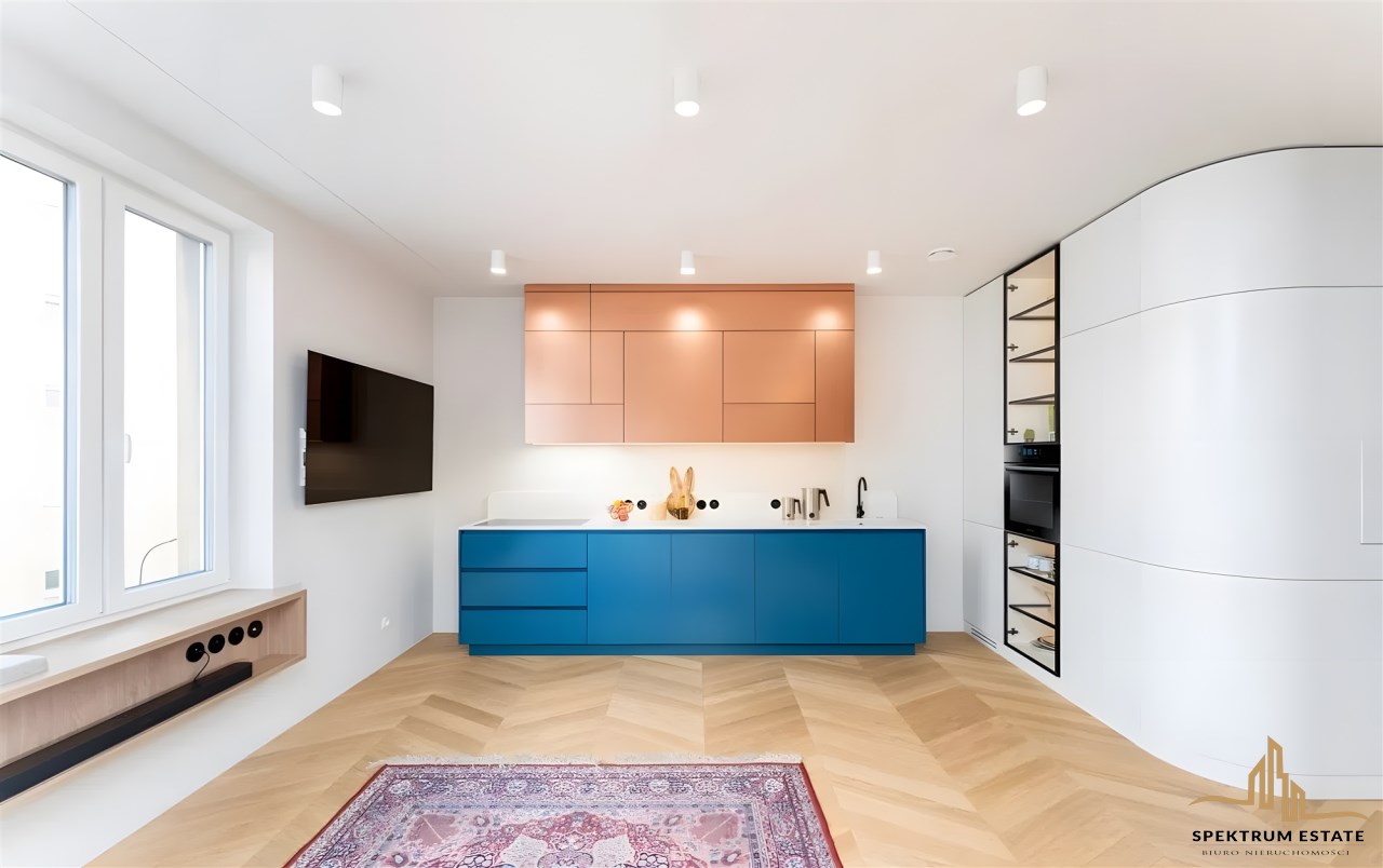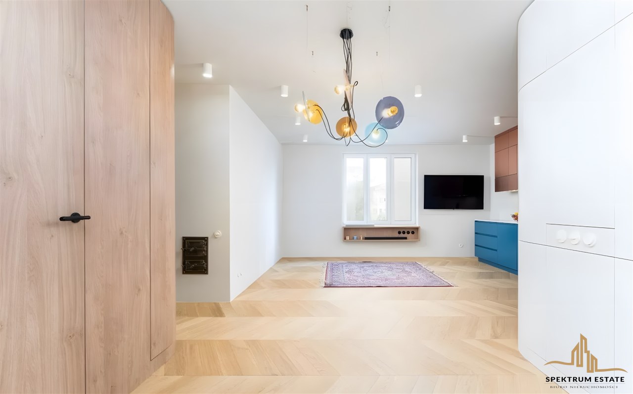Mieszkanie odnowione w wysokim standardzie z dbałością o szczegóły , meble wykonane na zamówienie zawierają ciekawe i ergonomiczne rozwiązania