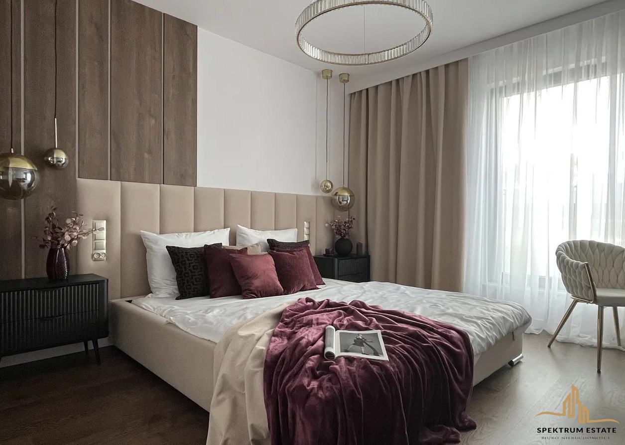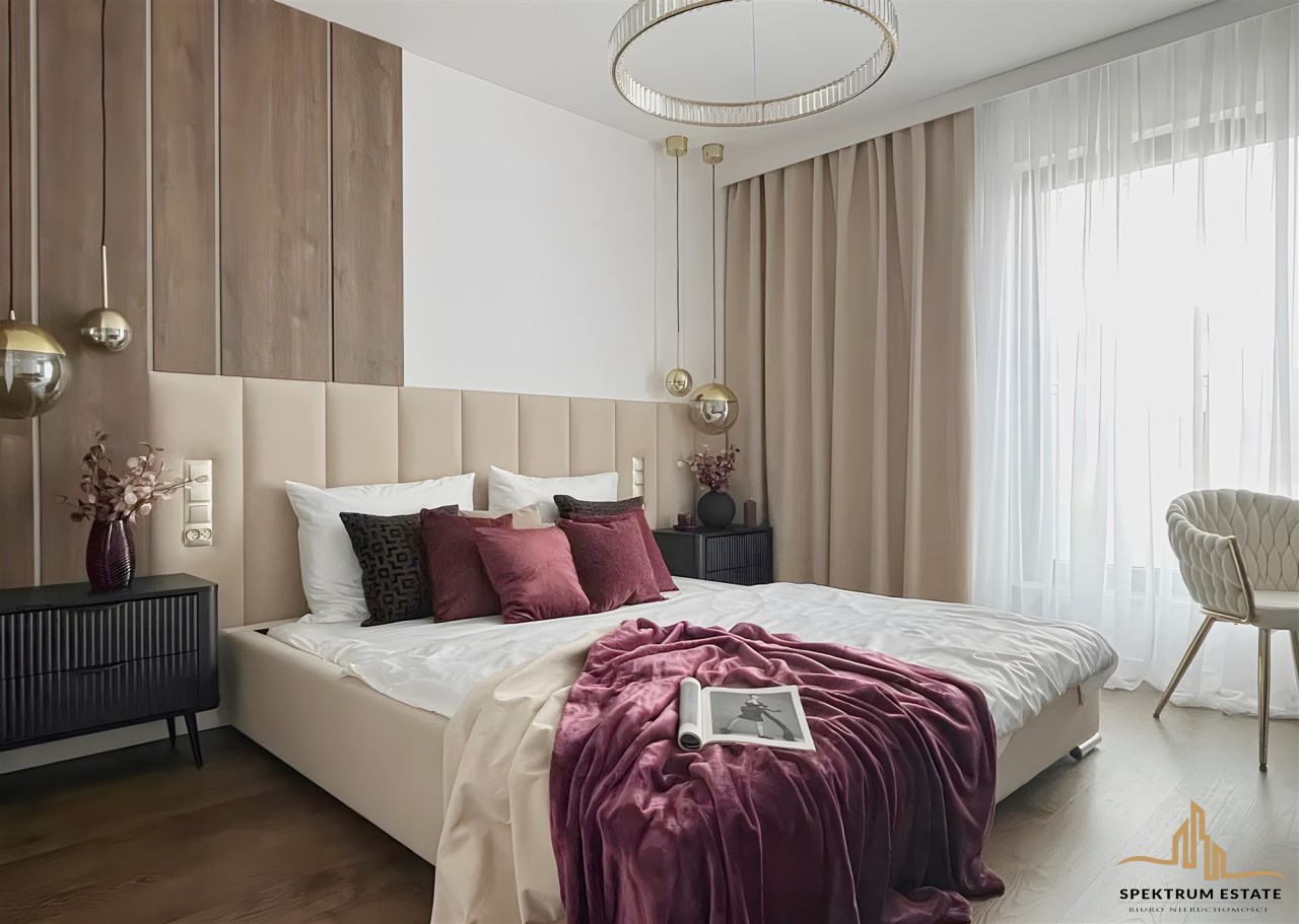 master bedroom z prywatną garderobą i toaletką, mieszczący duże, wygodne łóżko – 19 m².