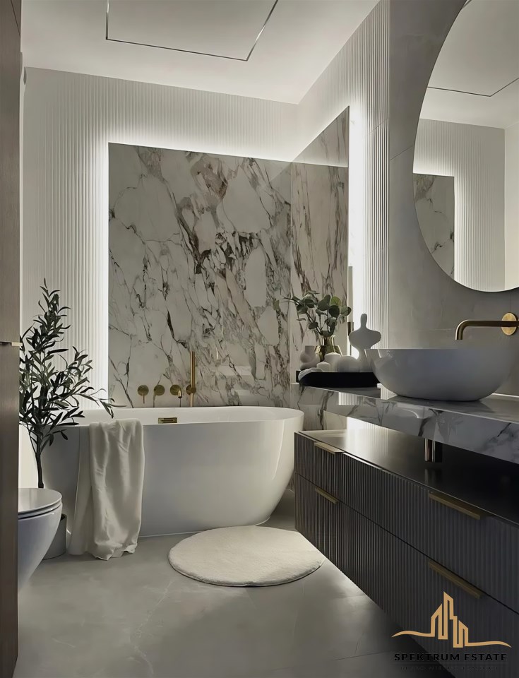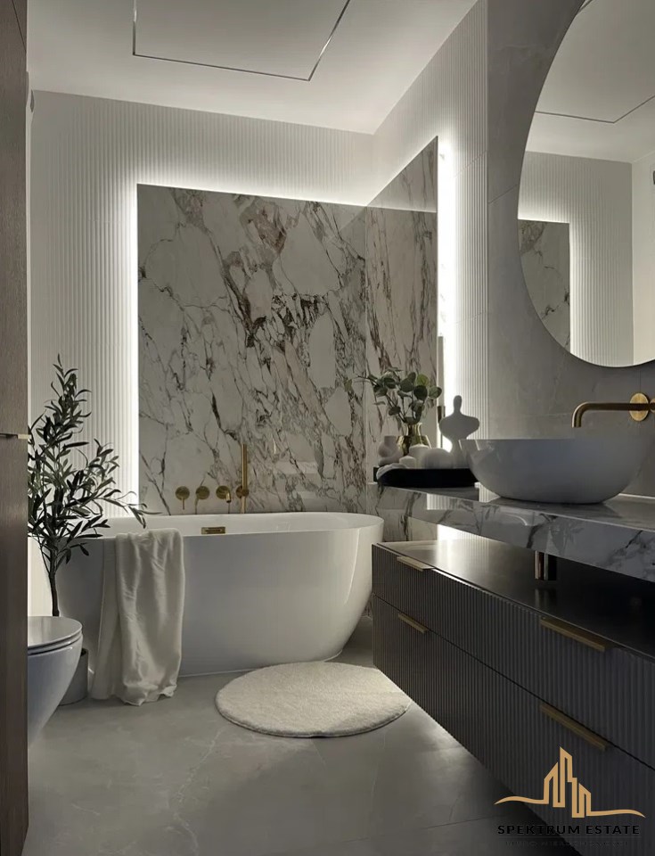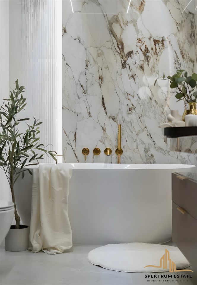 - łazienkę z wanną wolnostojącą oraz z ogrzewaniem podłogowym – 6 m²,