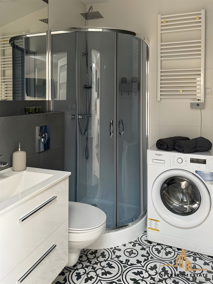 | Wyposażenie łazienki | kabina prysznicowa, lustro, prysznic, umywalka, WC |