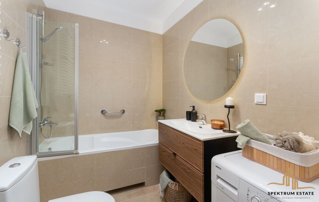 | Wyposażenie łazienki | lustro, pralka, prysznic, umywalka, wanna, WC |