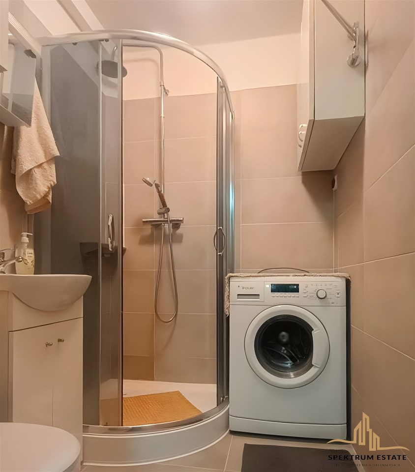| Wyposażenie łazienki | WC, umywalka, prysznic, pralka, lustro, kabina prysznicowa |