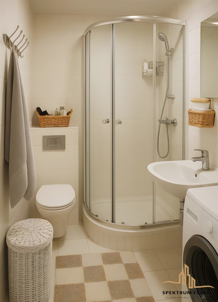 | Wyposażenie łazienki | lustro, pralka, prysznic, umywalka, WC |