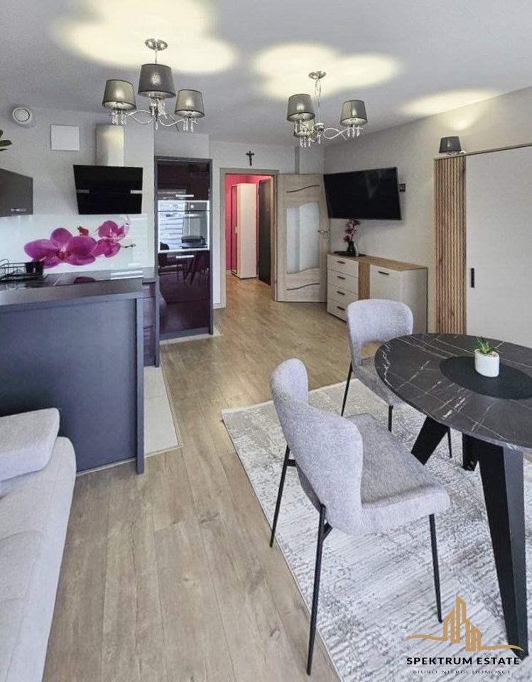 Stylistyka mieszkania wyróżniona nowoczesną estetyką oraz nowym wyposażeniem.
