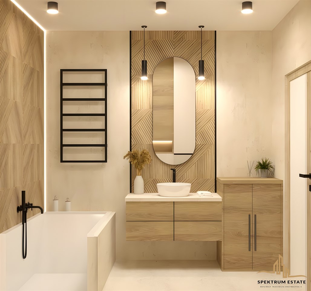 | Wyposażenie łazienki | lustro, pralka, umywalka, wanna, WC |