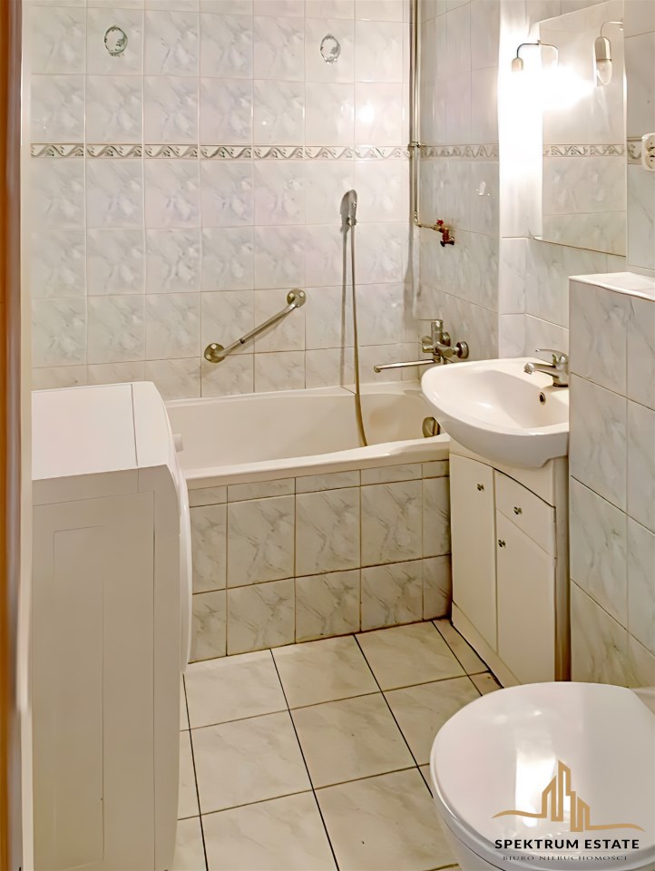 Wyposażenie łazienki | lustro, pralka, umywalka, wanna, WC |