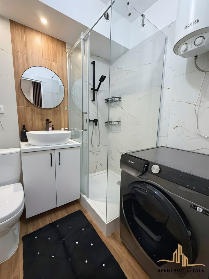 | Wyposażenie łazienki | lustro, pralka, prysznic, umywalka, WC |