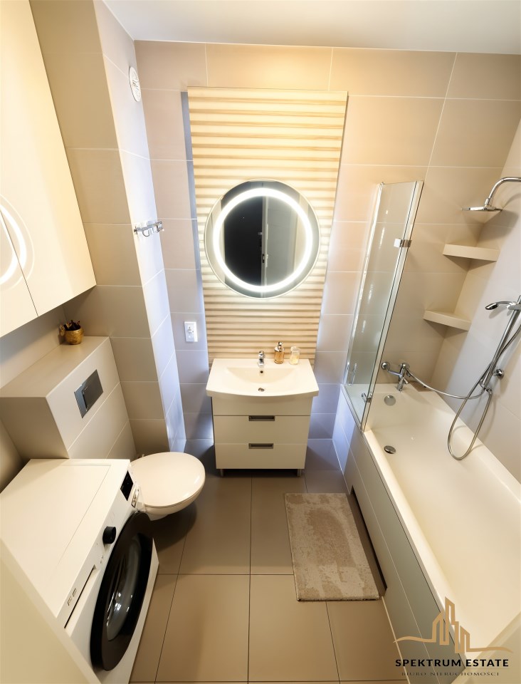 | Wyposażenie łazienki | umywalka, WC, prysznic, pralka, lustro |