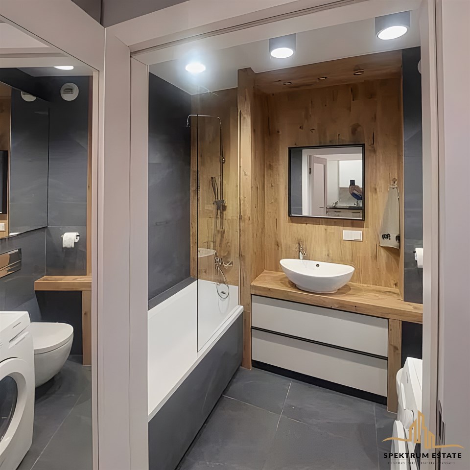 | Wyposażenie łazienki | WC, wanna, umywalka, prysznic, pralka, lustro |