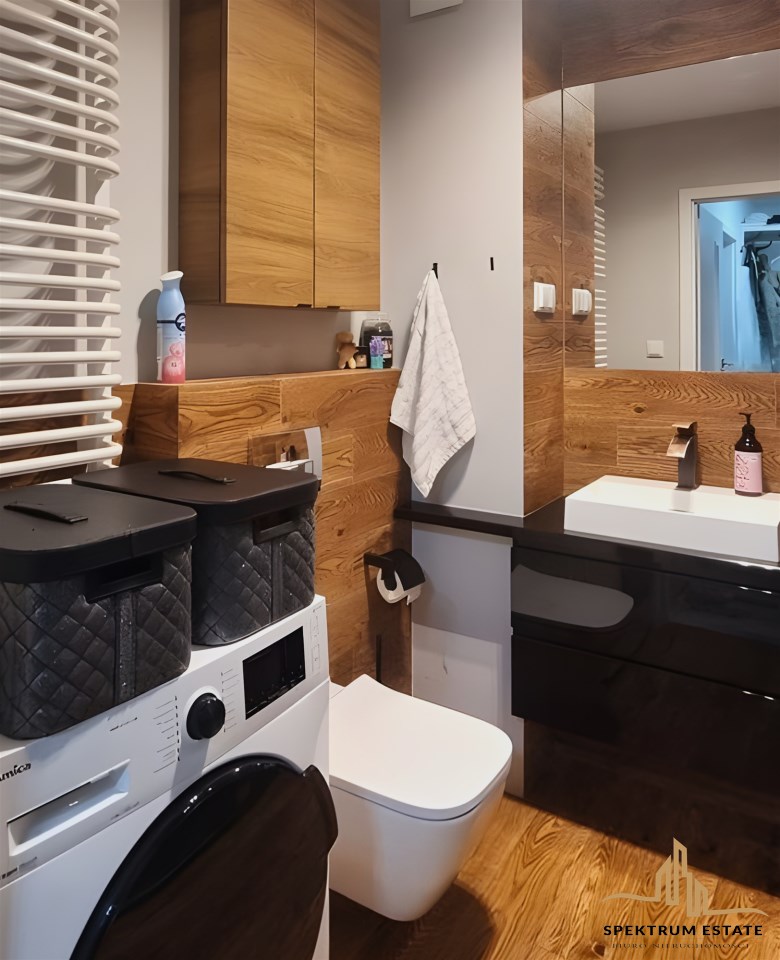 | Wyposażenie łazienki | kabina prysznicowa, pralka, prysznic, umywalka, WC |
