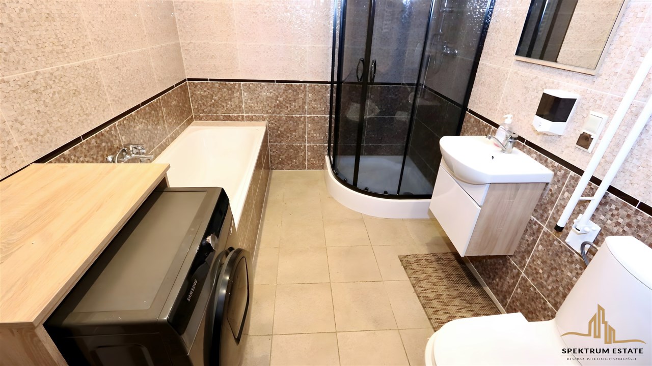 | Wyposażenie łazienki | WC, wanna, umywalka, pralka, kabina prysznicowa |