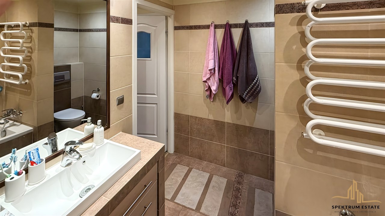 Mieszkanie jest zadbane gotowe do wprowadzenia bez większych nakładów finansowych. Na podłodze w salonie - nowe panele, w sypialniach deska barlinecka, a w przedpokoju, łazience i kuchni flizy i terakota. W pomieszczeniach: okna PCV z roletami wewnętrznymi (ekspozycja: północ - południe), grzejniki (ogrzewanie gazowe z piecem dwufunkcyjnym De Dietrich). Drzwi antywłamaniowe. Media: woda i kanalizacja miejska, prąd, gaz, internet-światłowód, tv naziemna (antena na dachu), możliwość tv kablowej.