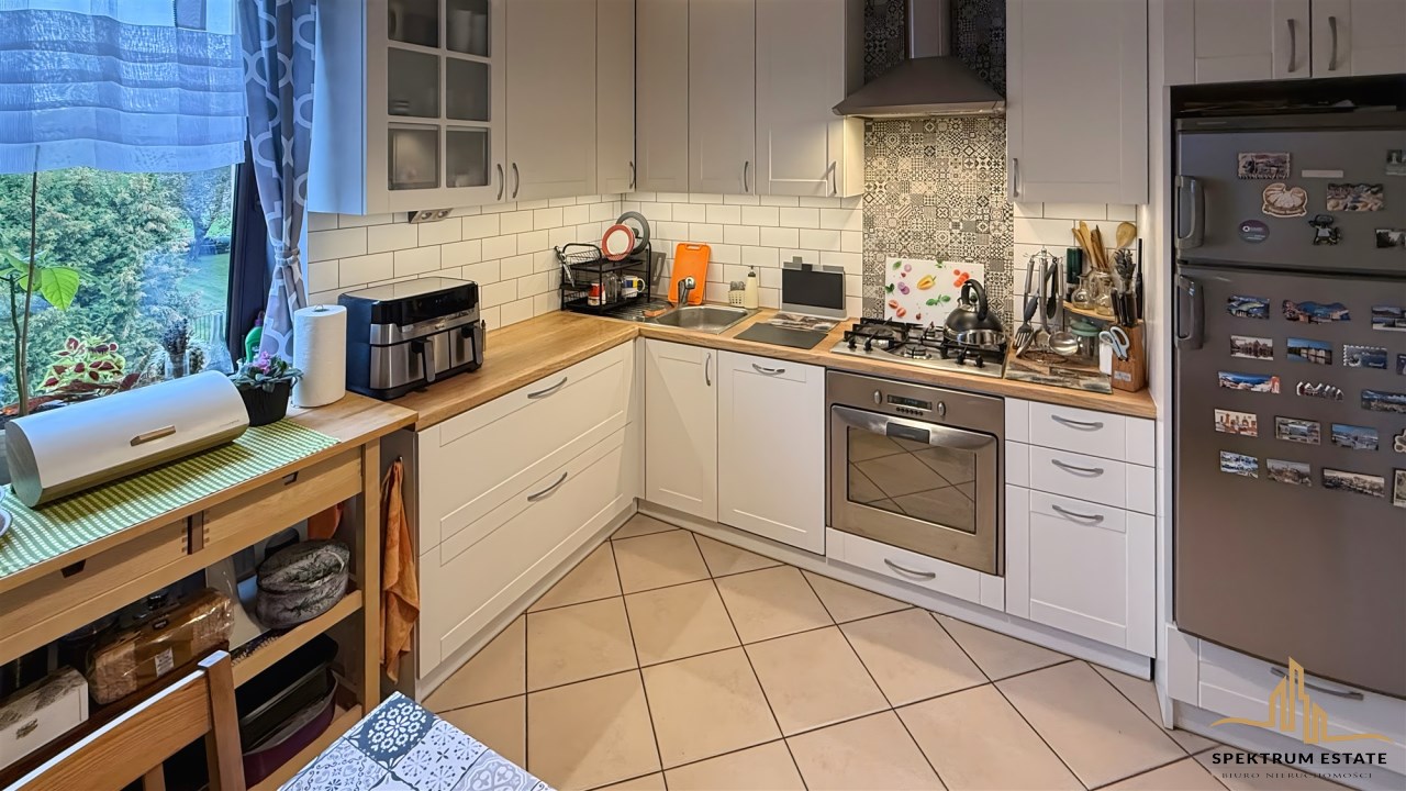 Mieszkanie jest zadbane gotowe do wprowadzenia bez większych nakładów finansowych. Na podłodze w salonie - nowe panele, w sypialniach deska barlinecka, a w przedpokoju, łazience i kuchni flizy i terakota. W pomieszczeniach: okna PCV z roletami wewnętrznymi (ekspozycja: północ - południe), grzejniki (ogrzewanie gazowe z piecem dwufunkcyjnym De Dietrich). Drzwi antywłamaniowe. Media: woda i kanalizacja miejska, prąd, gaz, internet-światłowód, tv naziemna (antena na dachu), możliwość tv kablowej.