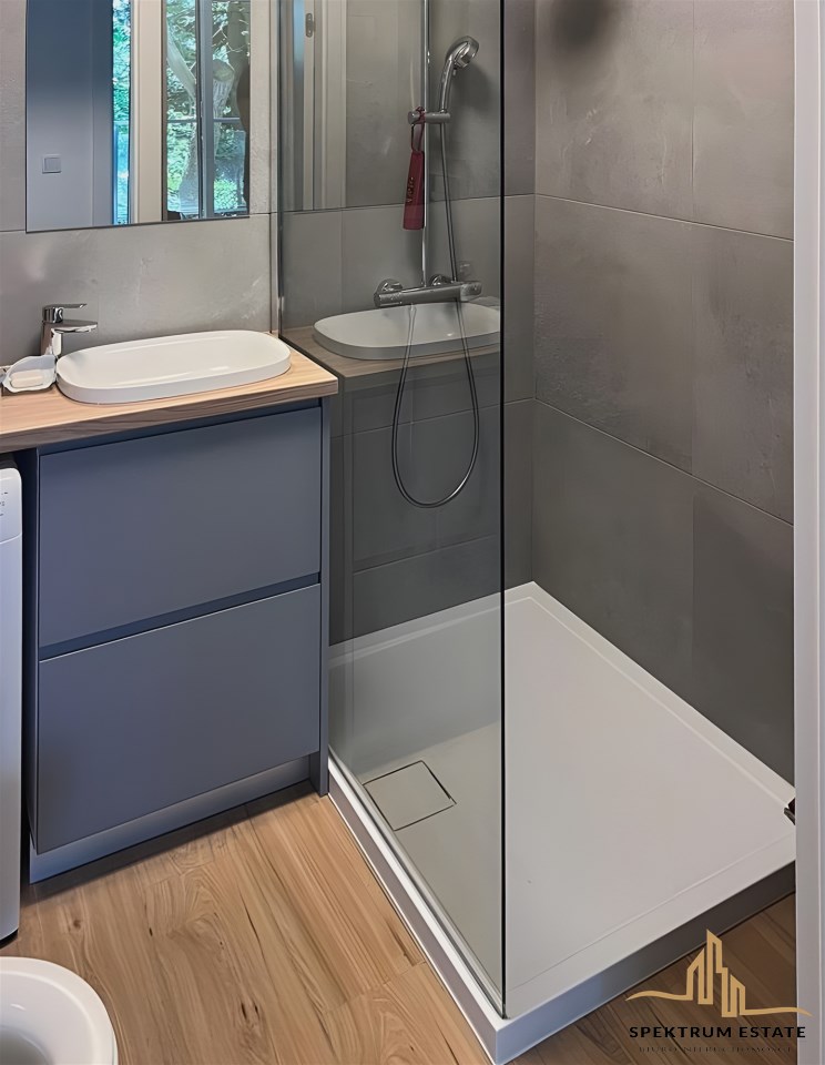 | Wyposażenie łazienki | lustro, natrysk, pralka, prysznic, umywalka, WC |