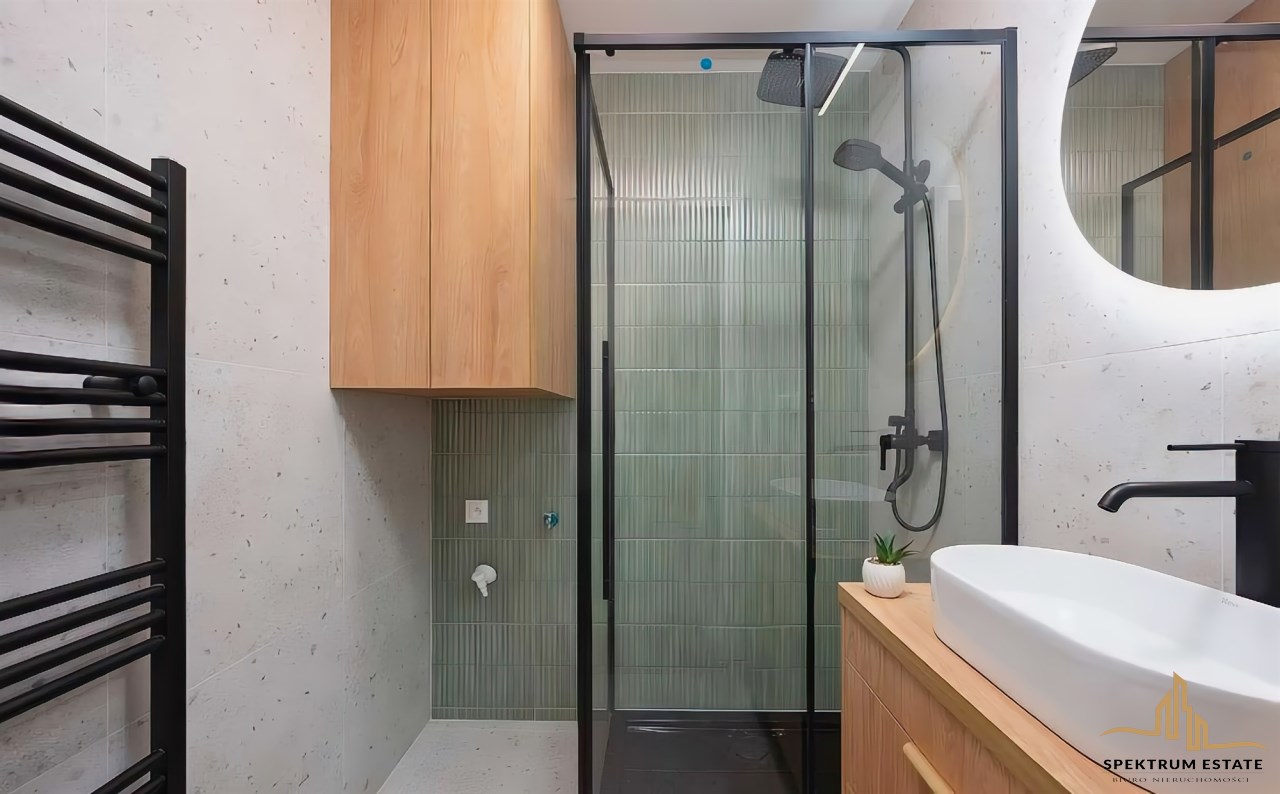 | Wyposażenie łazienki | lustro, kabina prysznicowa, WC, pralka, prysznic, umywalka |