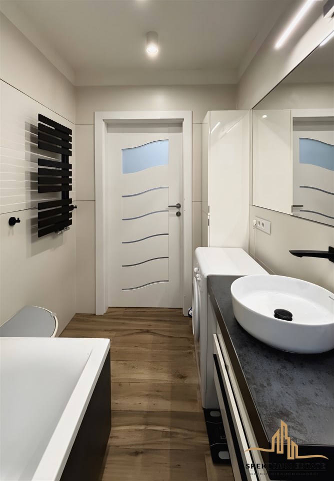 | Wyposażenie łazienki | WC, wanna, umywalka, prysznic, pralka, lustro |