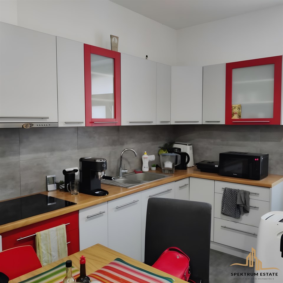 Mieszkanie jest w pełni umeblowane i wyposażone. Obecnie jest wynajmowane - istanieje możliwość przedłużenia umowy najmu.