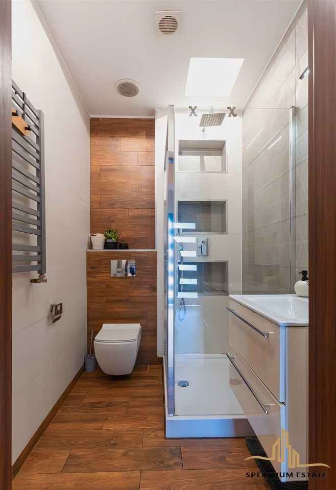 | Wyposażenie łazienki | WC, umywalka, prysznic, pralka, lustro, kabina prysznicowa |