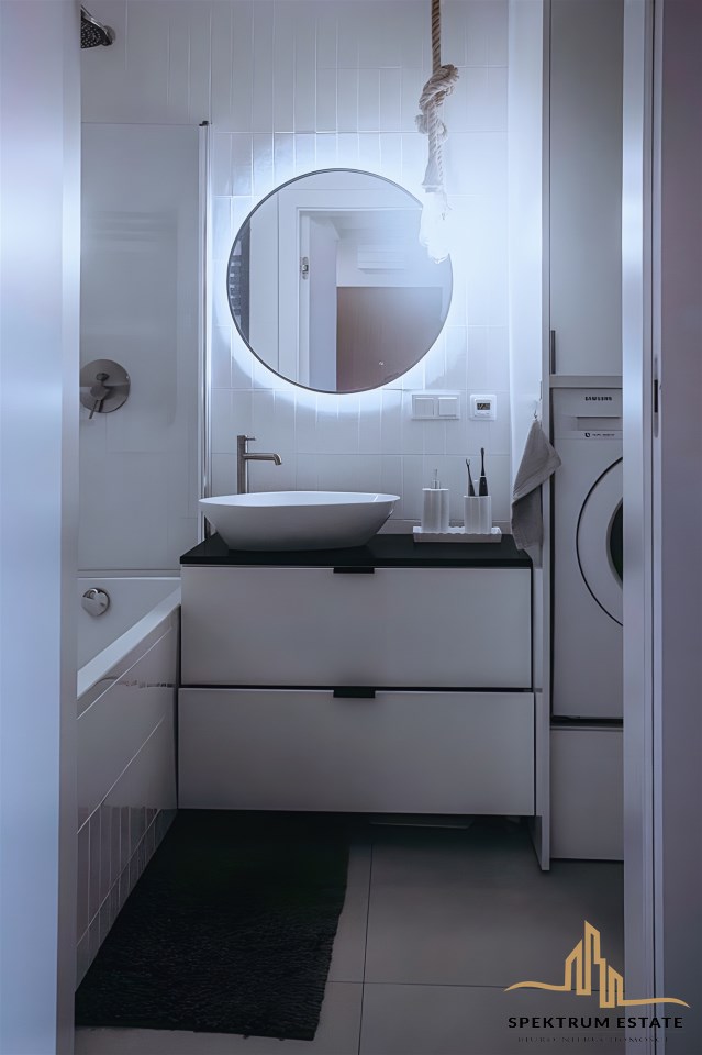 | Wyposażenie łazienki | lustro, pralka, prysznic, umywalka, wanna, WC |