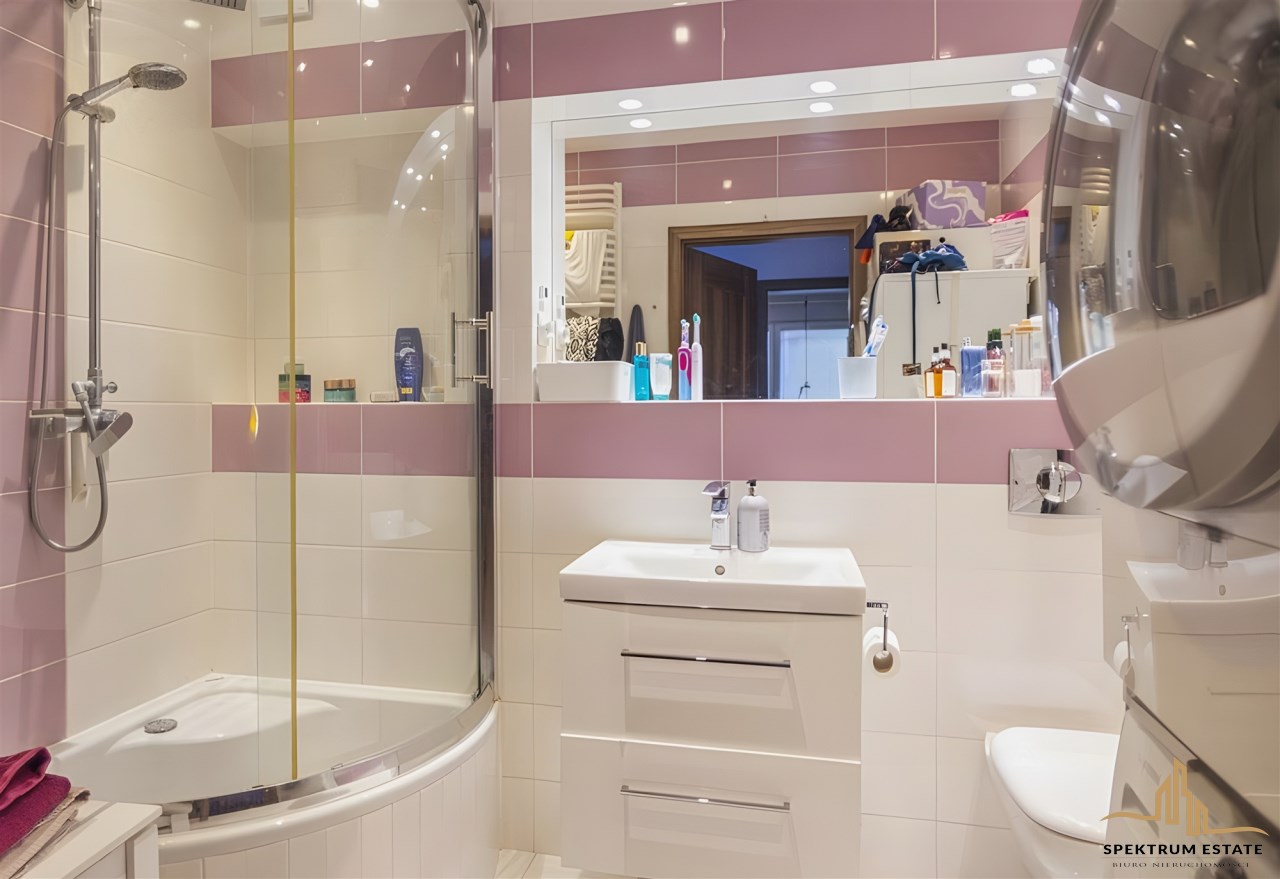 | Wyposażenie łazienki | WC, umywalka, prysznic, pralka, lustro, kabina prysznicowa |