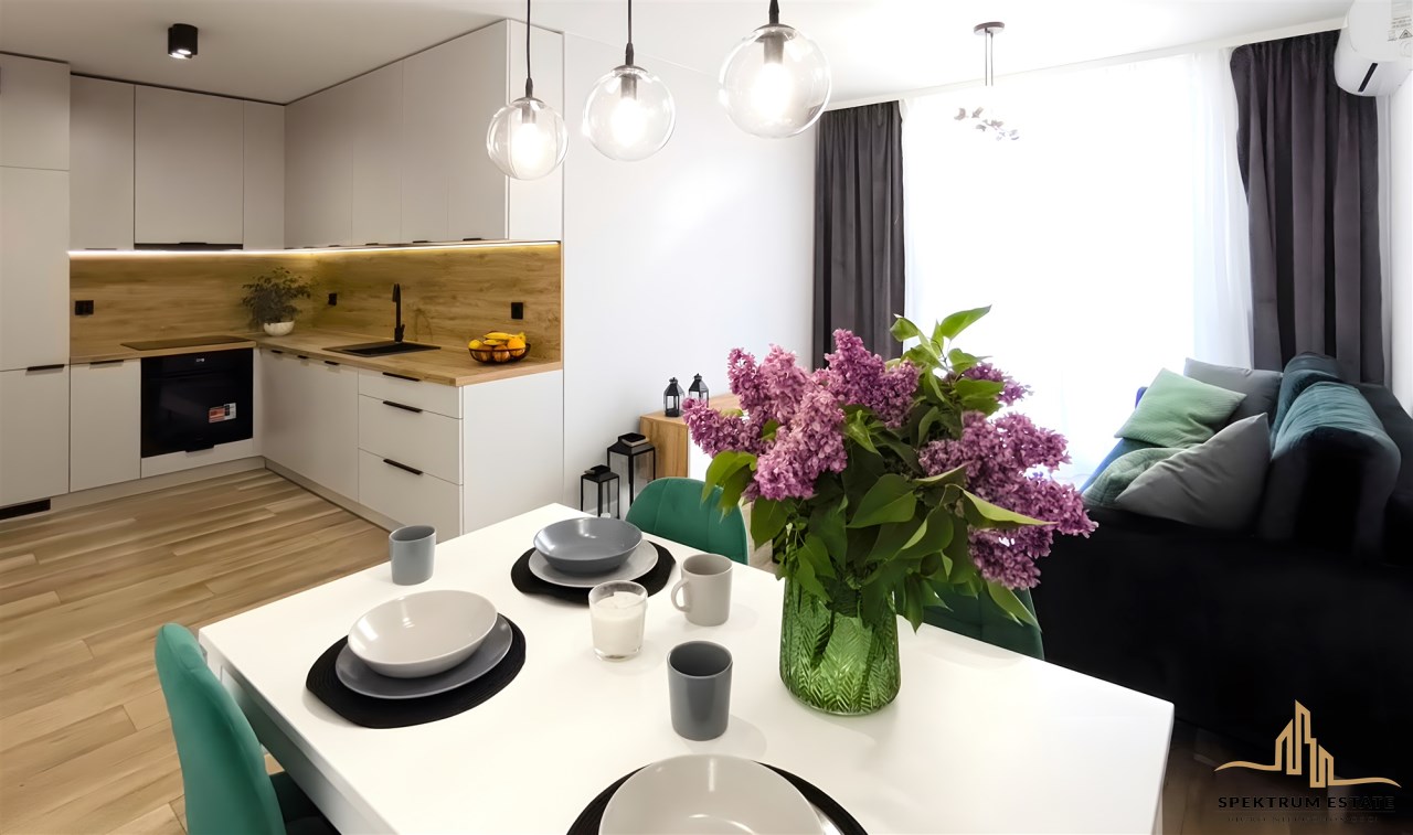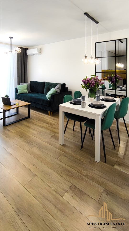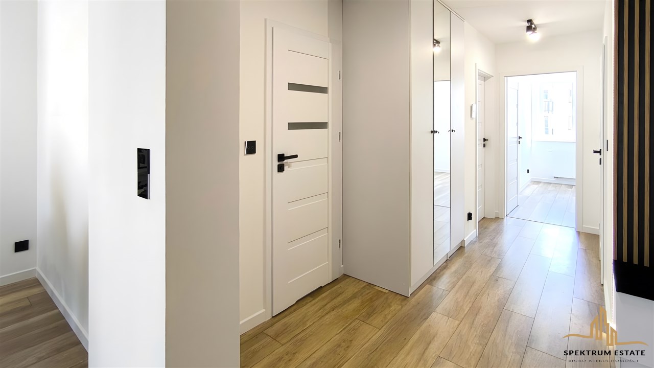 Mieszkanie bardzo ciepłe i jasne, dwustronna ekspozycja (wschodnia i zachodnia) wykończone w wysokim standardzie, klimatyzacja, zabudowa kuchenna i szafy wykonane przez stolarza, gotowe do zamieszkania od zaraz.