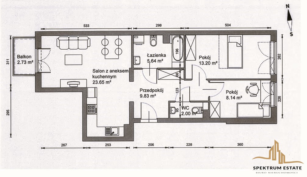 * do mieszkania przynależy balkon 2,73m2