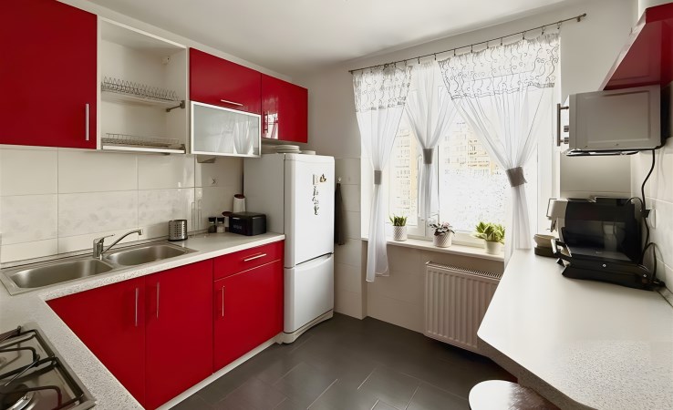 | Wyposażenie kuchni | zlewozmywak z baterią, szafki wiszące, szafki stojące, kuchenka, szafki kuchenne |