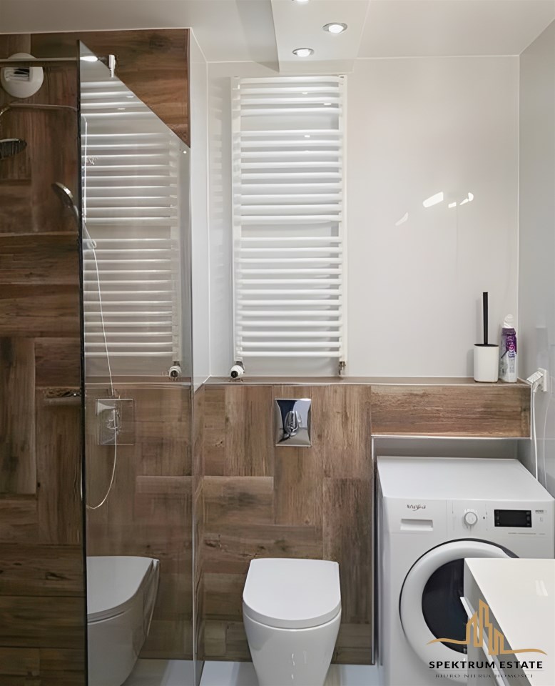 - łazienka - prysznic, pralko-suszarka , umywalka z szafką, wc