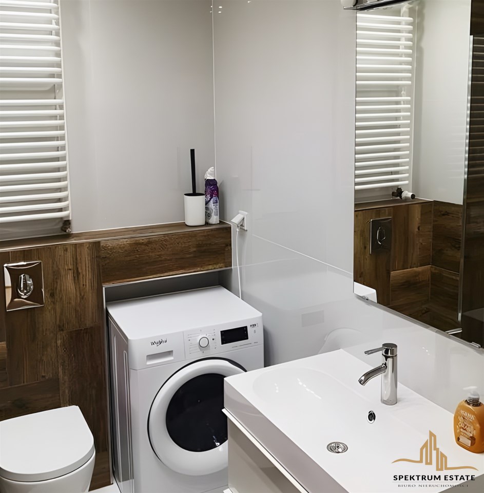 | Wyposażenie łazienki | WC, umywalka, pralka, lustro, kabina prysznicowa |